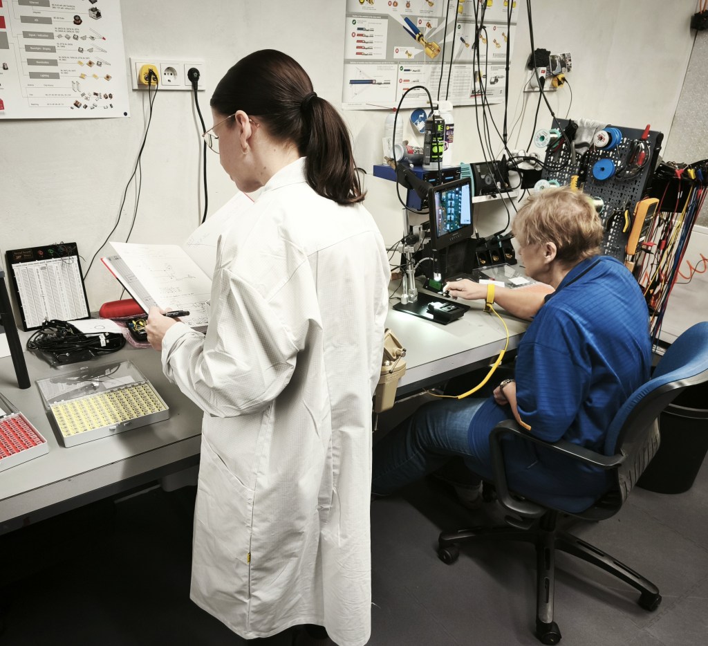Die Elektronikfertigung befindet sich innerhalb der EPA, um eine sichere Handhabung von ESDS zu gewährleisten. Zudem ist dieser Bereich mit einer Filteranlage mit Überdruck ausgestattet, sodass hier Luftreinheitswerte wie in einem Reinraum der Kategorie 9 erreicht werden können.